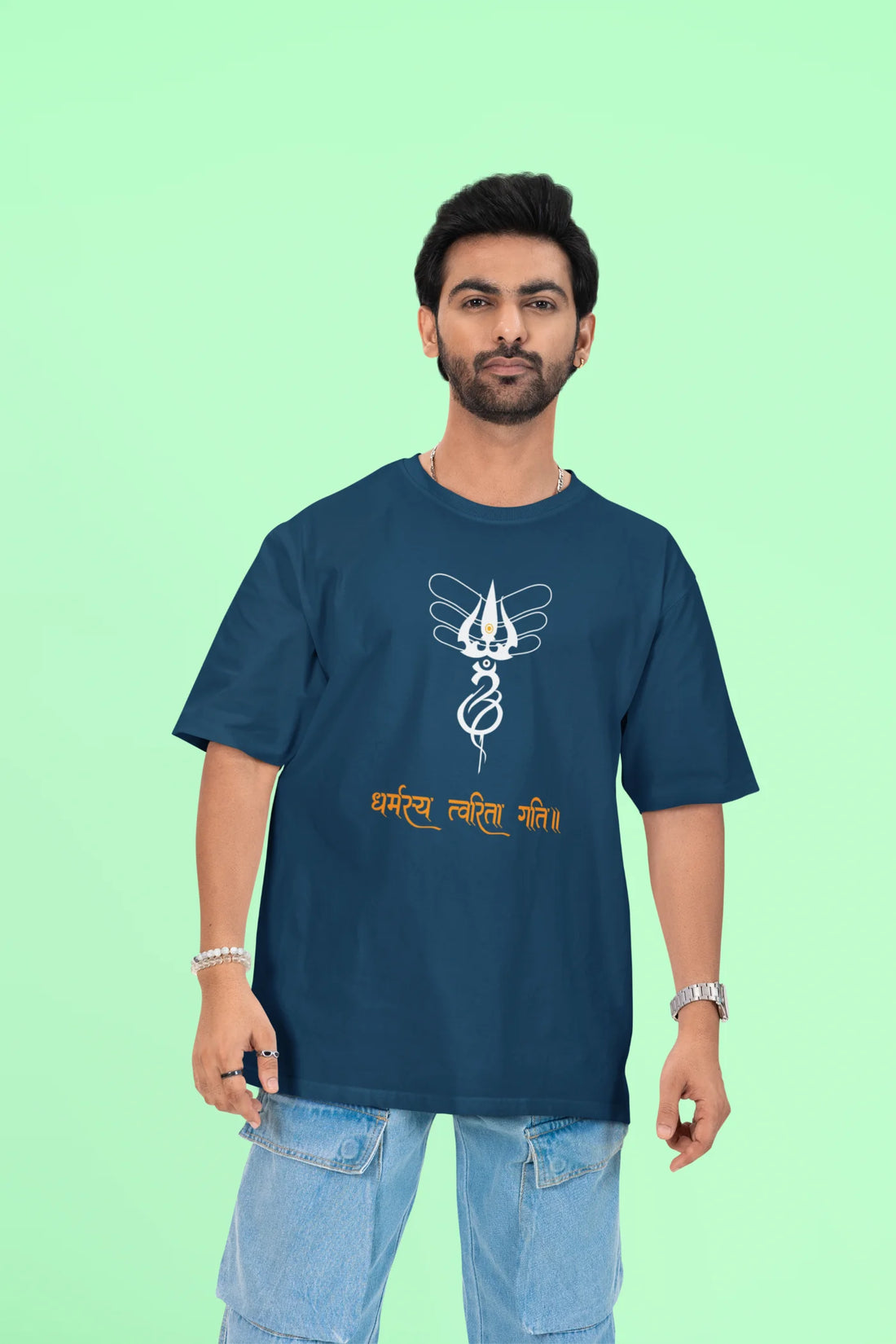Dharmasya Tvarita Gati Oversized T-Shirt – Wear Your Beliefs with Pride Channel the power of...