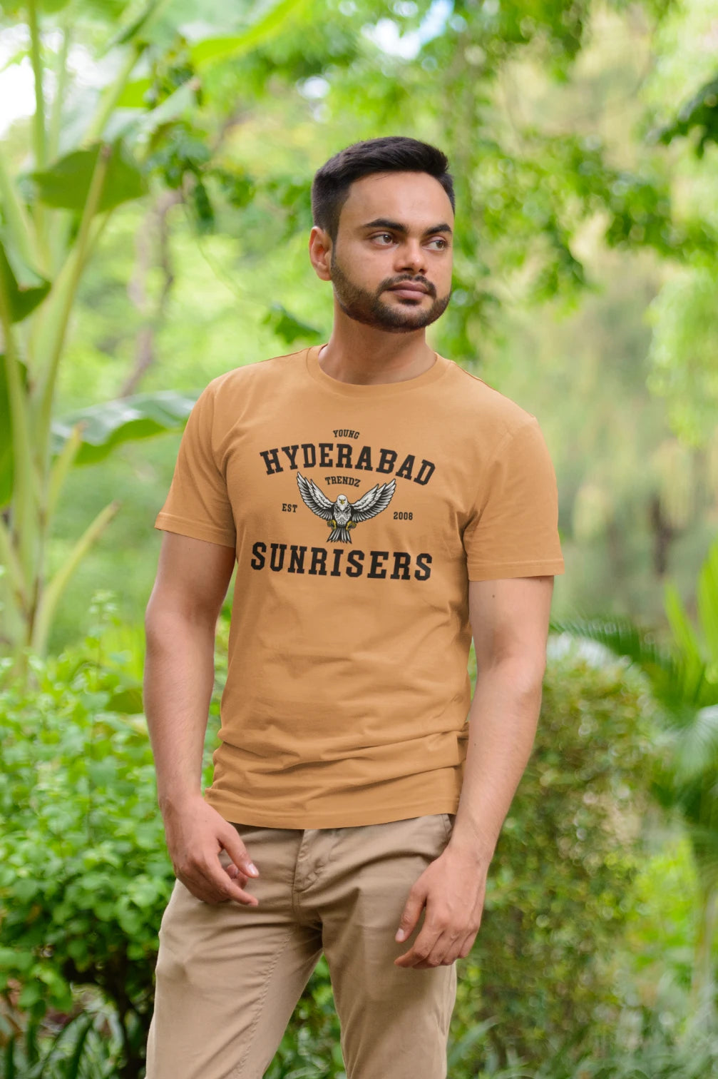 Sluit je aan bij het Oranje Leger en moedig je favoriete IPL-team in stijl aan! Bestel vandaag nog je Sunrisers Hyderabad Est 2008 T-shirt bij Dhaakad Tau en laat je passie voor cricket zien!