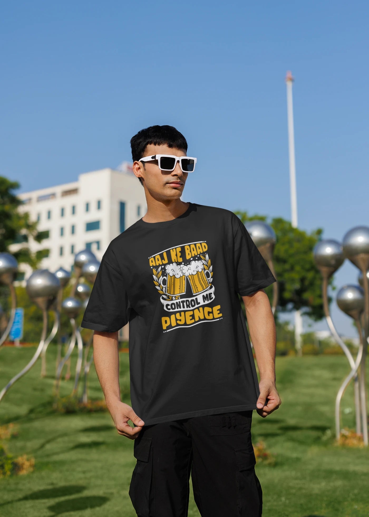 Upgrade your wardrobe with the 'Aaj Ke Baad Control Mein Piyenge' oversized t-shirt from Panchayat OTT! Featuring a bold and funny design, this trendy t-shirt offers unmatched comfort and style. Perfect for casual wear and quirky vibes. Shop now on Lazy Llama!