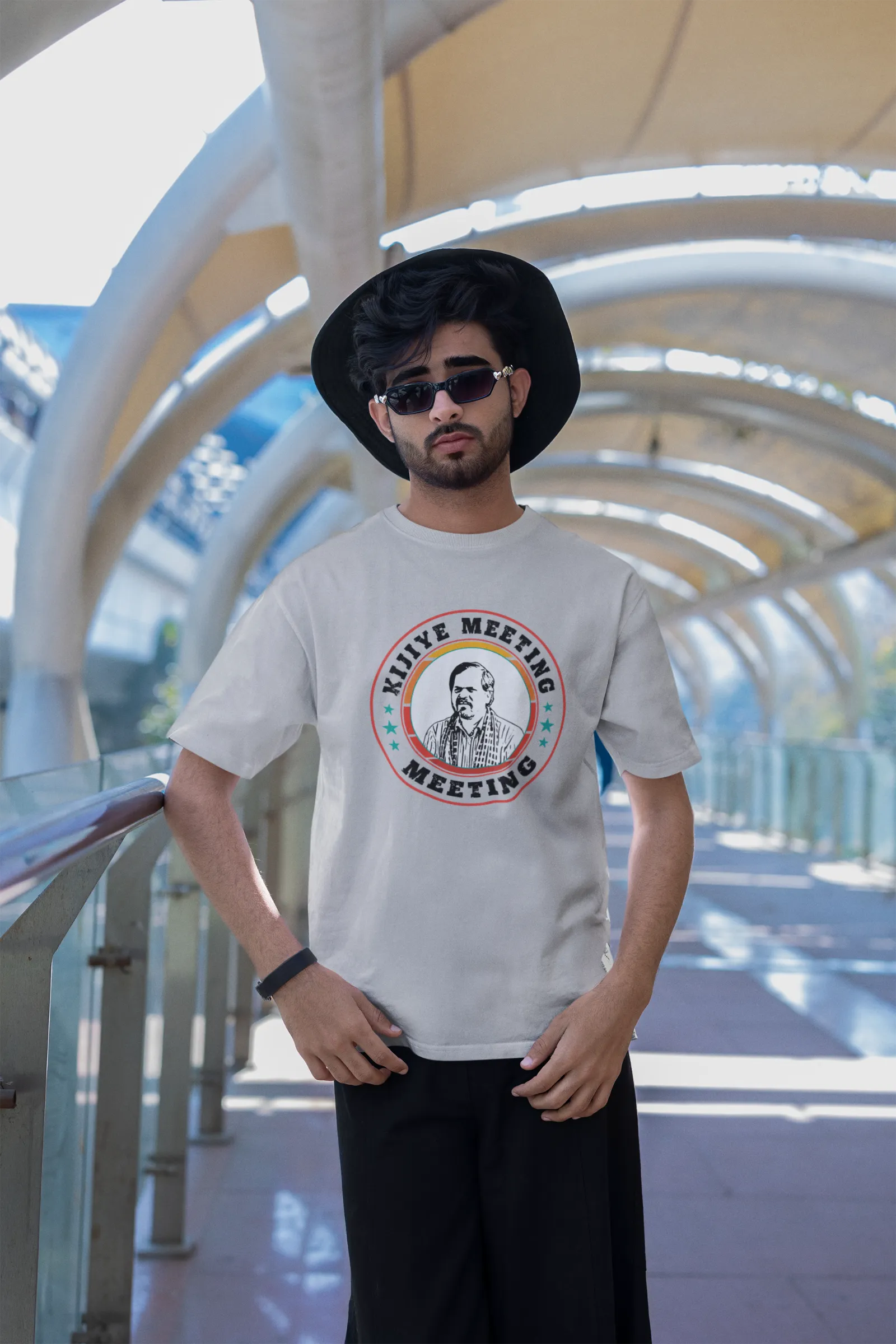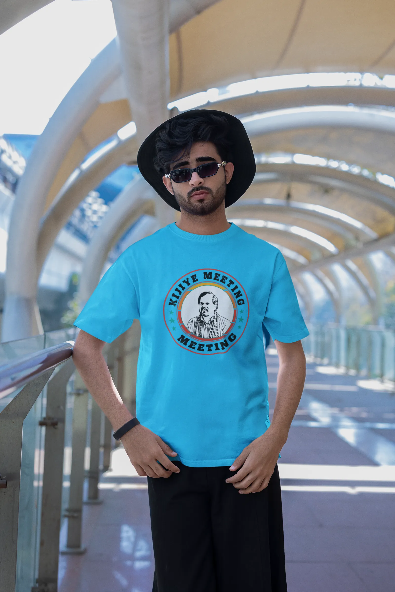 Add some humor to your wardrobe with the 'Kijiye Meeting Meeting' T-shirt, inspired by the hilarious moments of the hit TV show Panchayat. This quirky and fun t-shirt is perfect for fans of office humor, making it a great conversation starter. Made from high-quality fabric, it ensures comfort for all-day wear, whether you’re working from home or catching up on episodes of your favorite show. A must-have for fans of witty Indian comedy, this t-shirt is available in various sizes and can be delivered to your doorstep anywhere in India. Wear it to your next meeting and let the laughs begin!