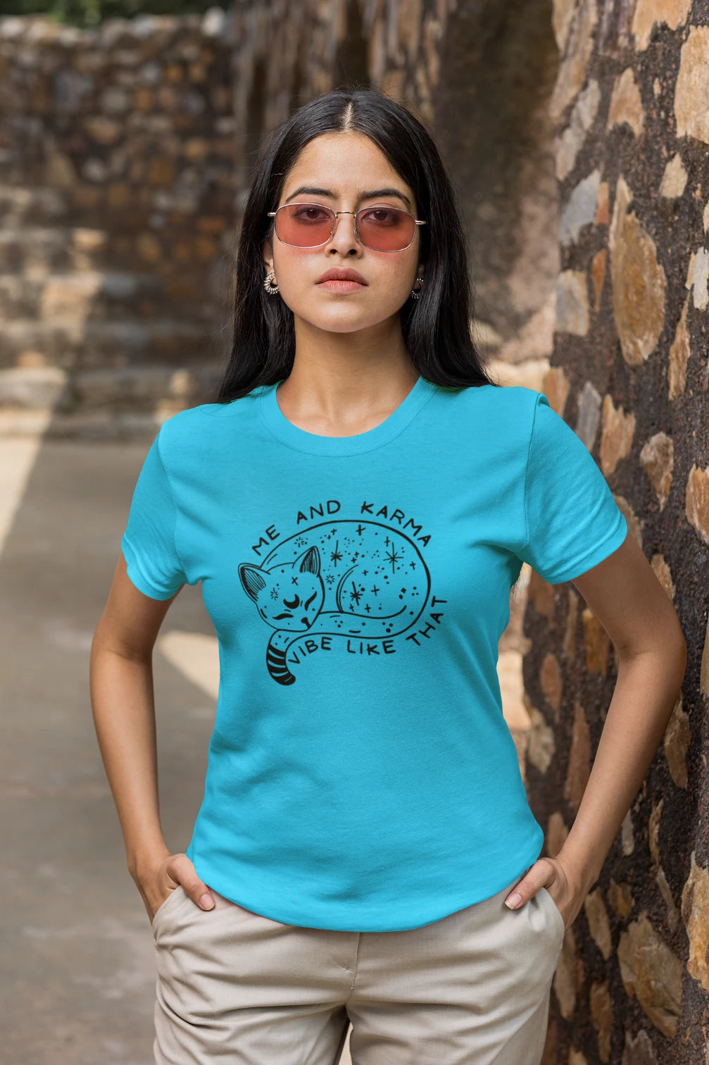 If you love bold statement tees, spiritual vibes, and stylish casual wear, this is the perfect addition to your wardrobe. Order now from Lazy Llama and vibe with karma in style!