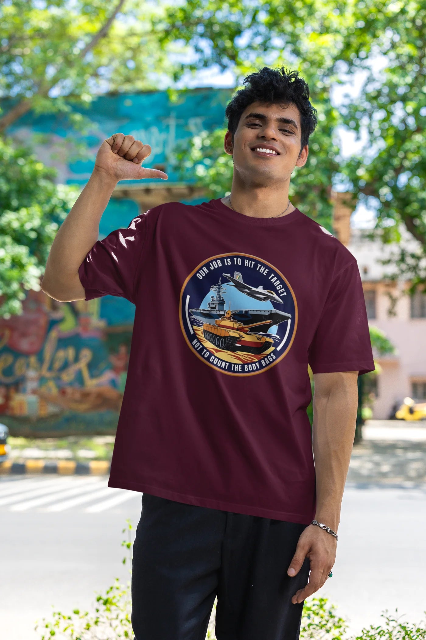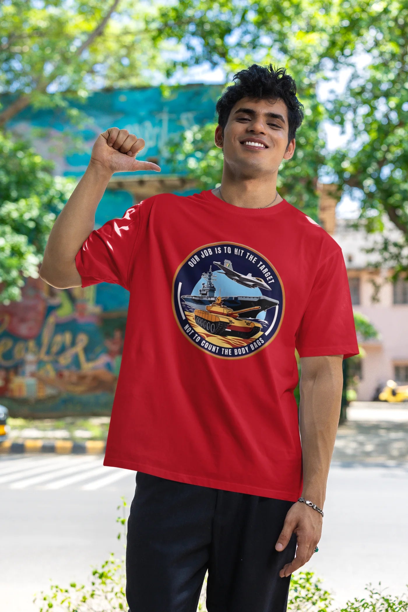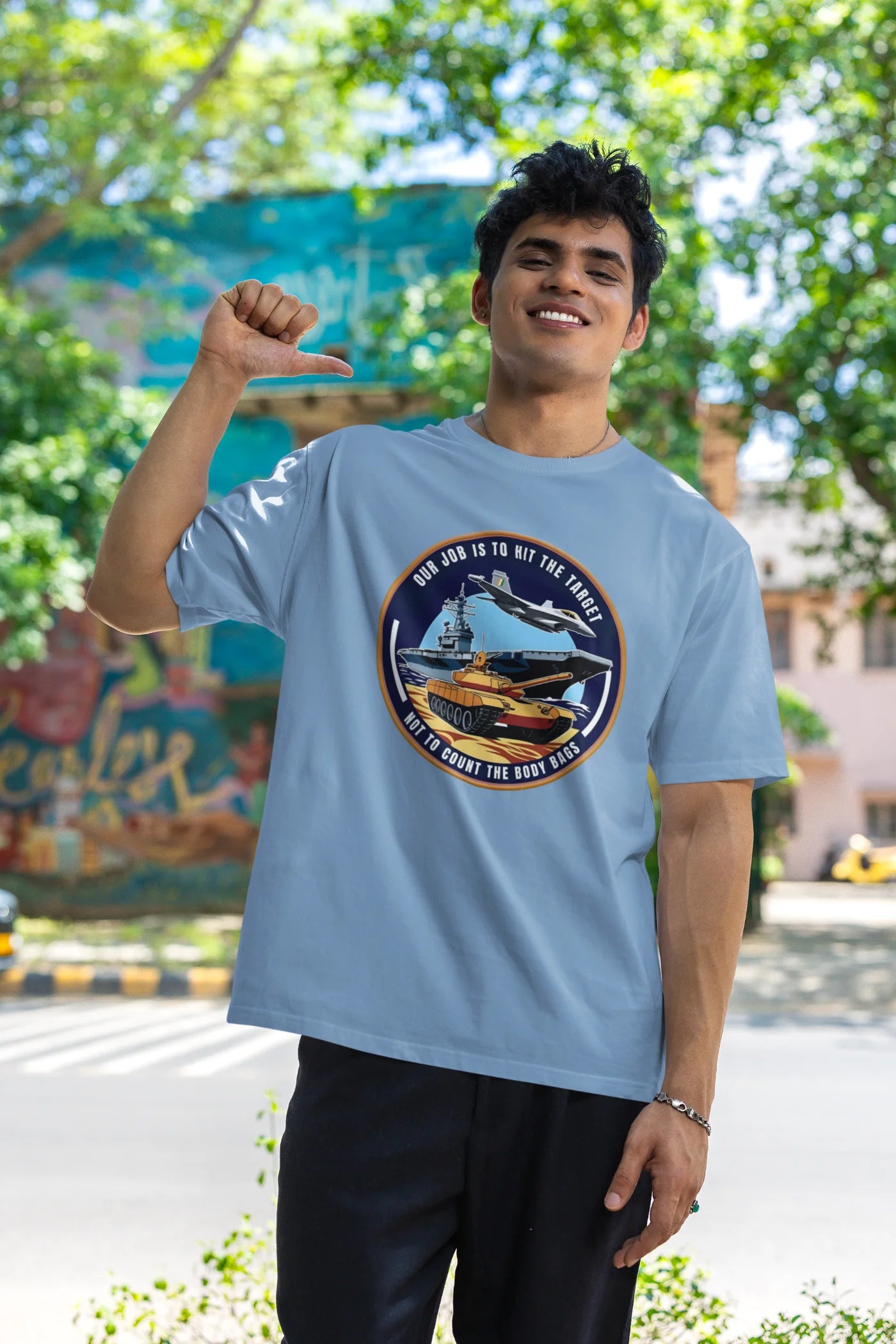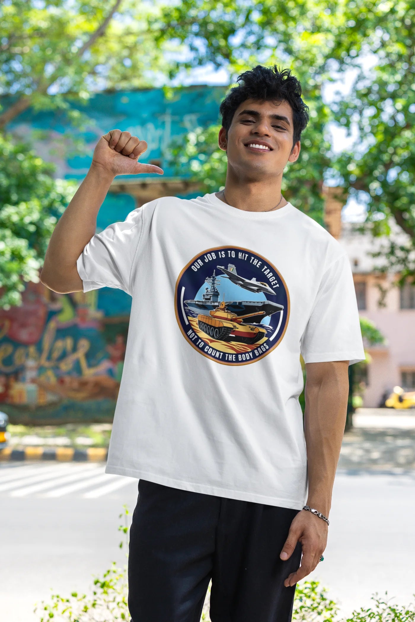 Step into the mindset of India’s elite defenders with the Our Job Is to Hit the Target Not to Count the Body Bags Oversized T-Shirt from Lazy Llama. Inspired by the courage and precision of the Indian Air Force (IAF), this powerful t-shirt makes a bold, unapologetic statement that reflects military discipline and strength.