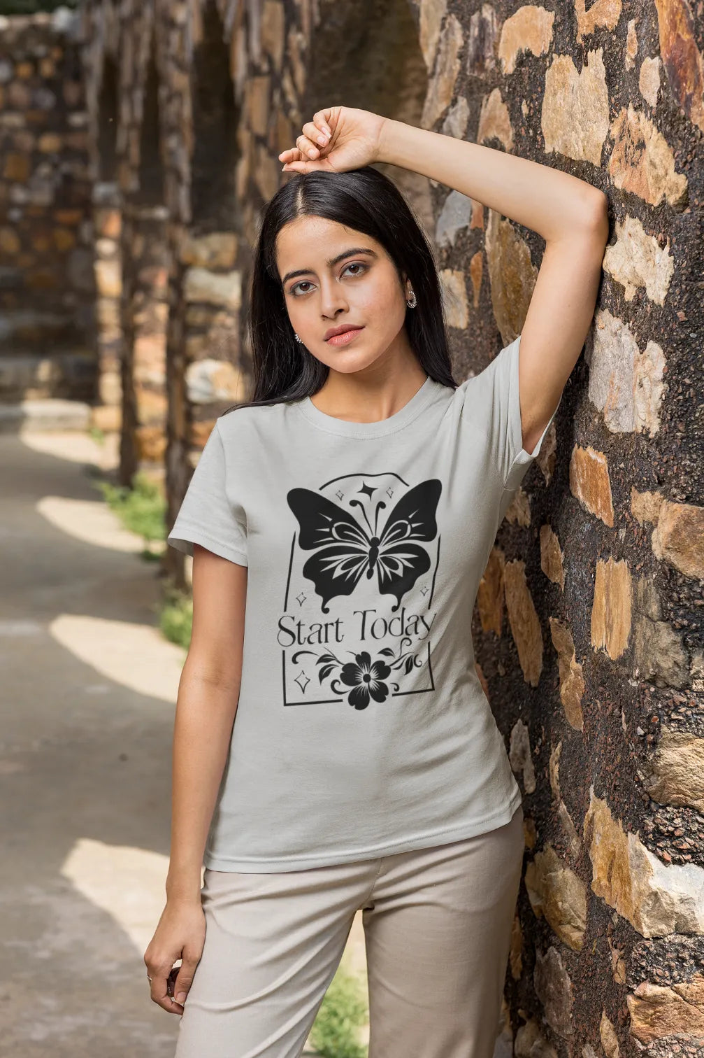 Step into your power with this boho-inspired oversized t-shirt that’s all about momentum and mindfulness. The “Start Today” message is more than just a quote – it’s a reminder that your journey begins now.